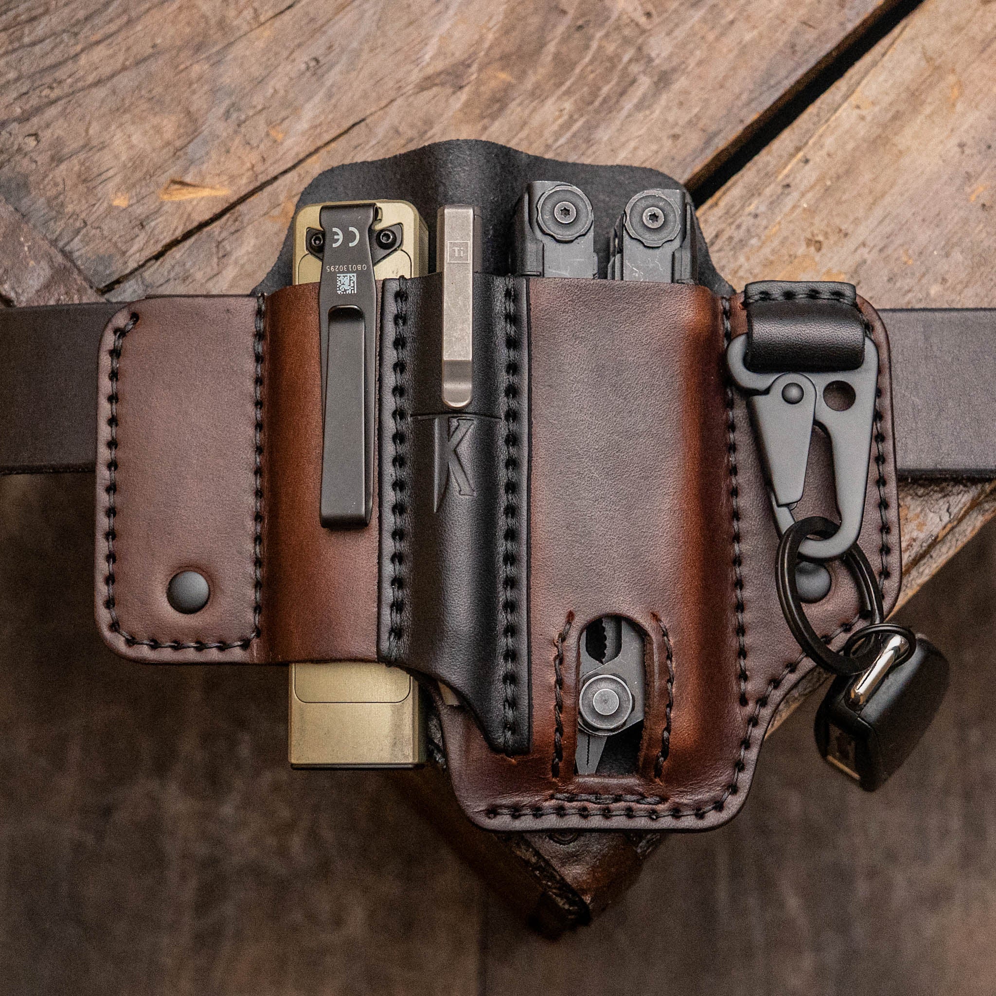From the Maker: Handcrafted leather gear made using traditional methods, Wickett and Craig Full Grain Leather, straight from a family owned and crafted small business. Listing is for leather gear only, NO tools/accessories included.