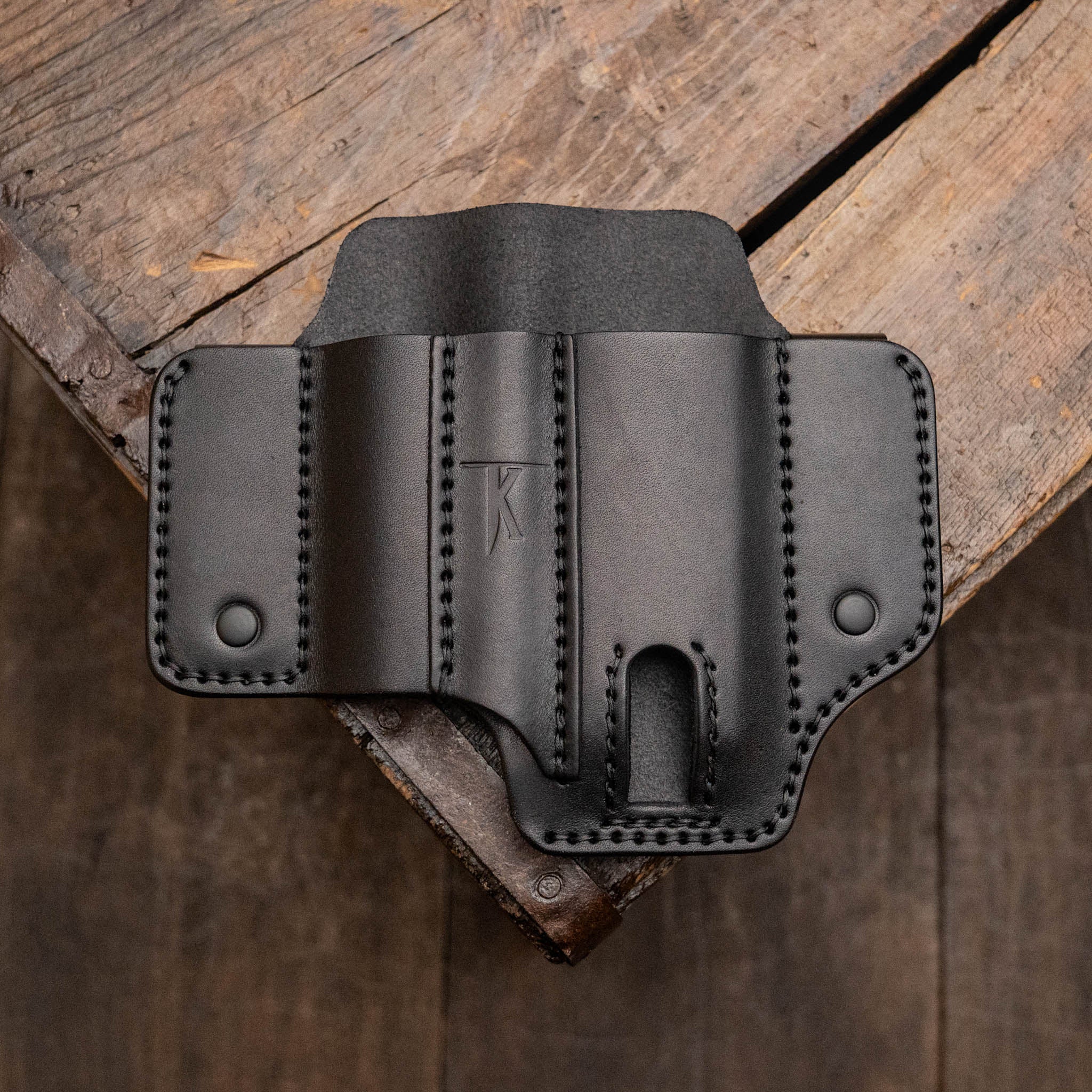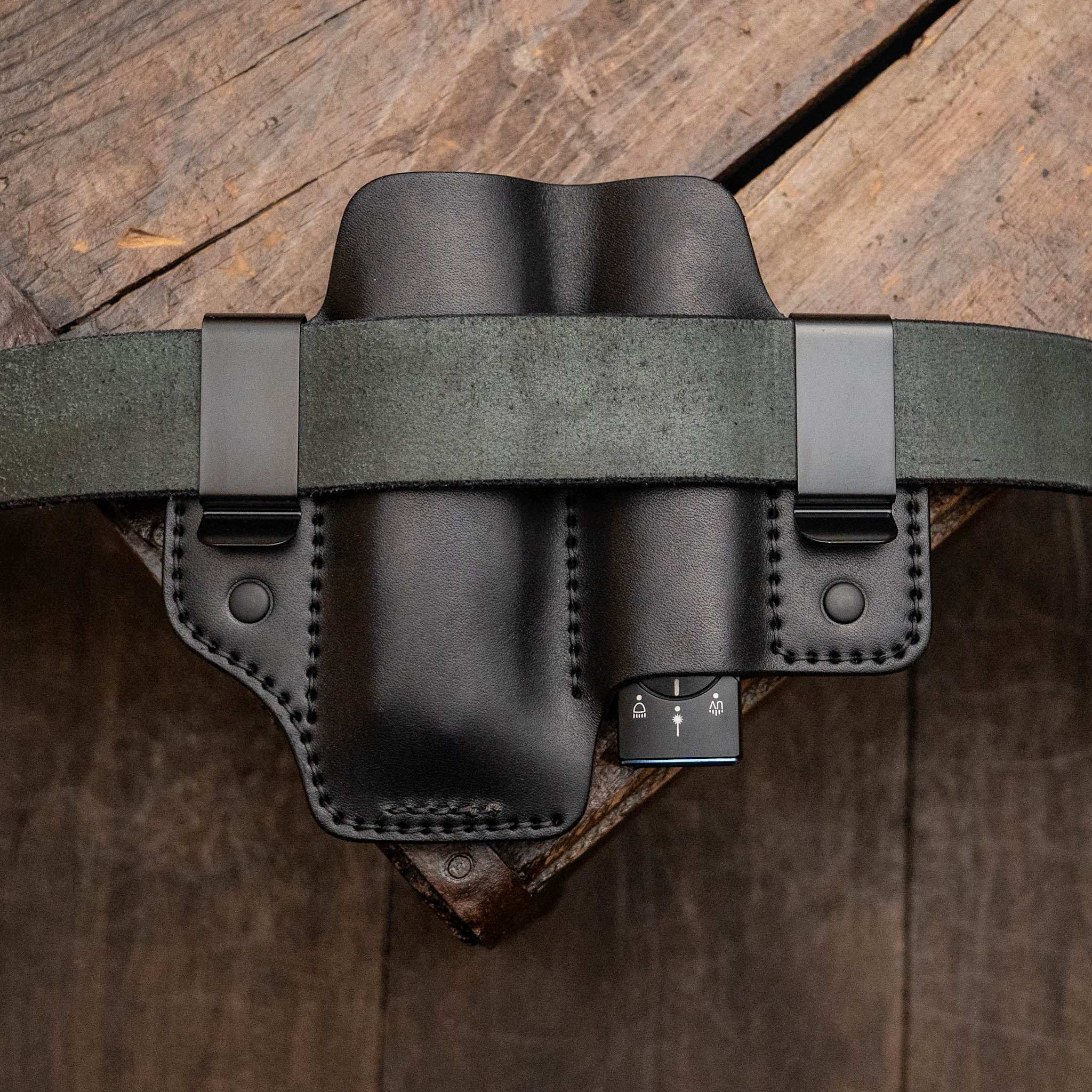 - Sizing: Double clip or belt loop is for a standard 1.5 inch wide belt.
