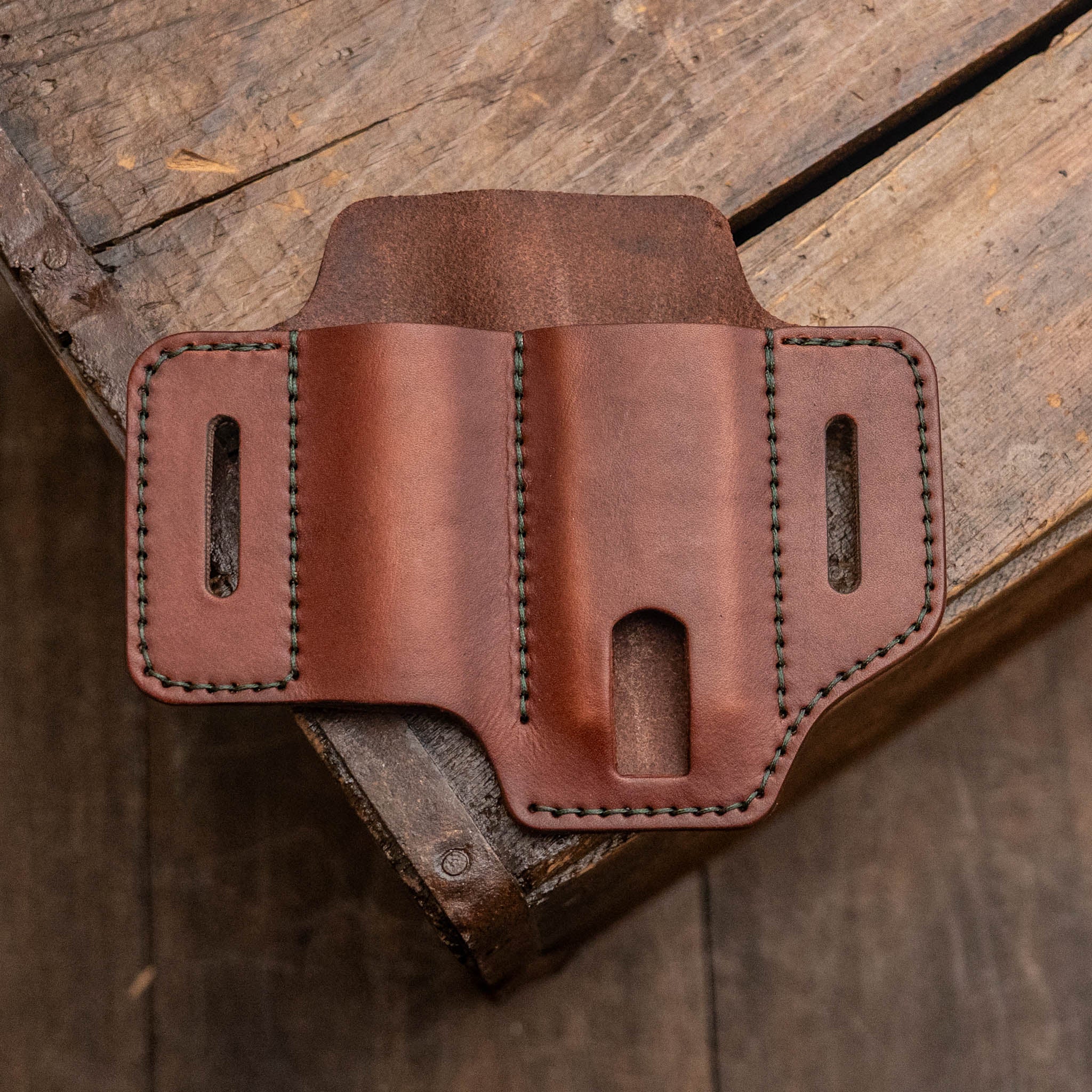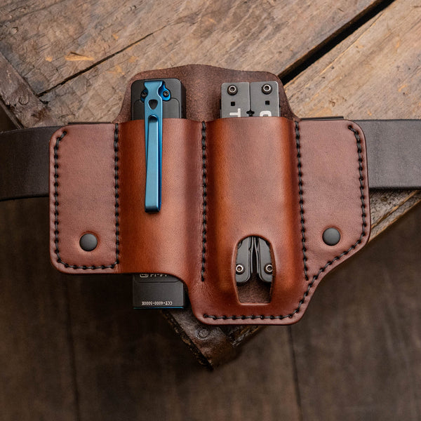 From the Maker: The BASIC items are not accented with additional stitching in order to provide a more affordable option. Handcrafted leather gear made using traditional methods, Wickett and Craig Full Grain Leather, straight from a family owned and crafted small business. Listing is for leather gear only, NO tools/accessories included.