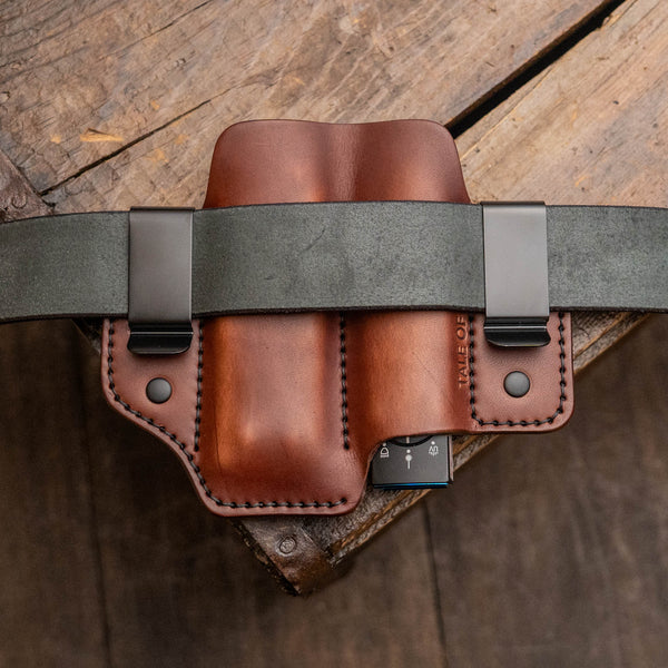 - Sizing Double clip and belt loops fit a 1.5 inch belt.